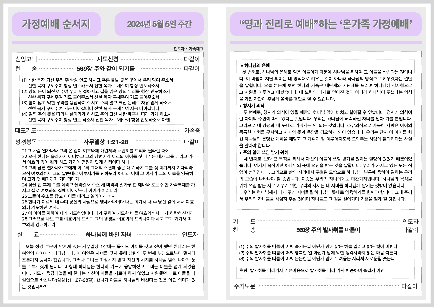 2024년 5월 5일 가정예배순서지