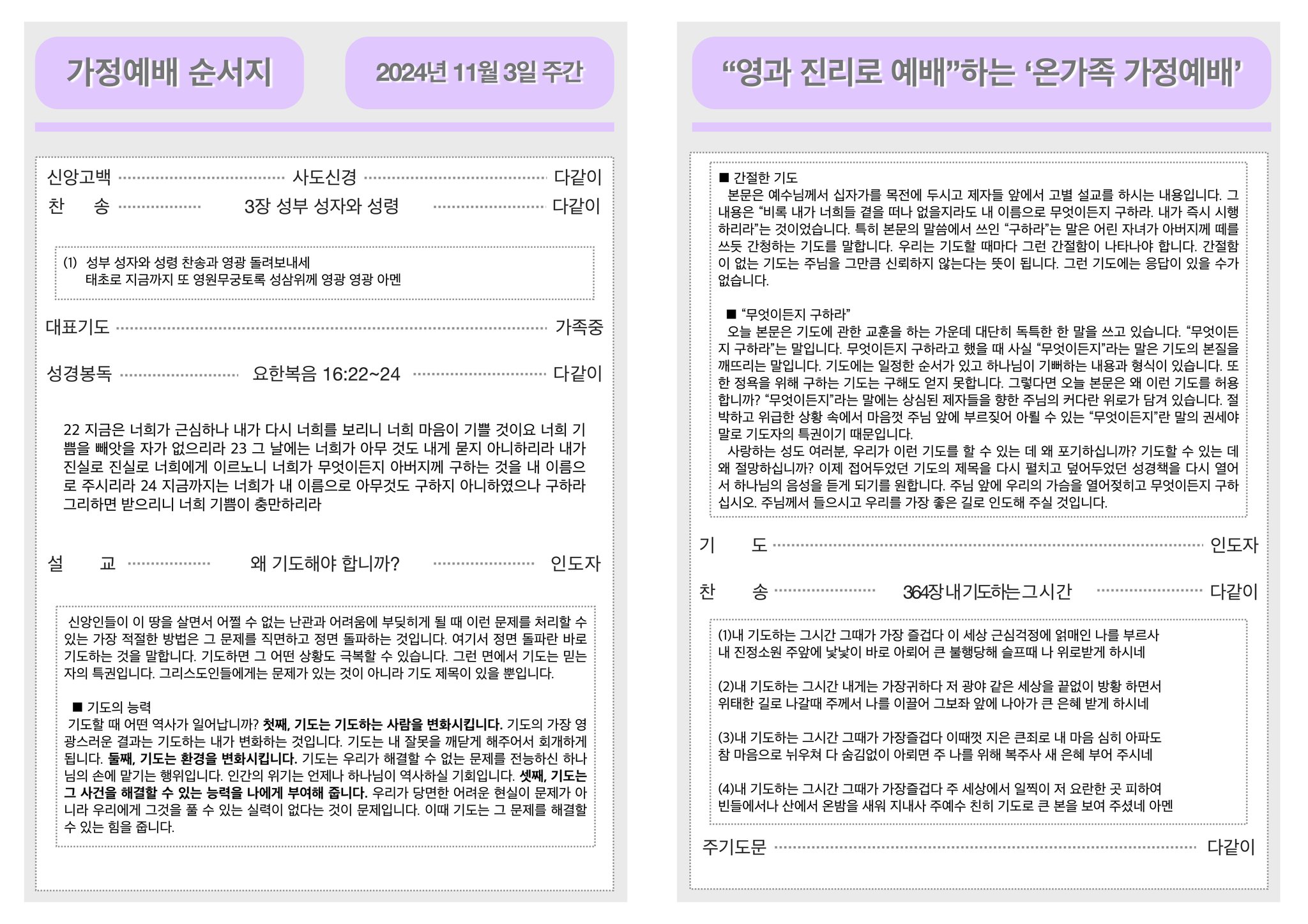 2024년 11월 3일 가정예배순서지