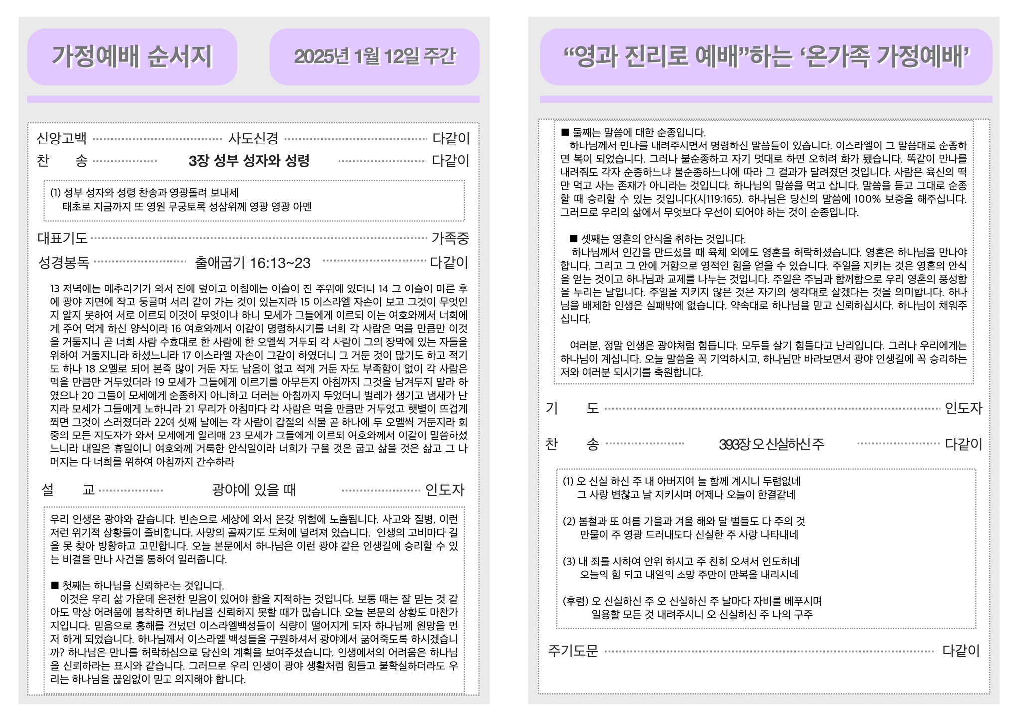 2025년 1월 12일 가정예배순서지