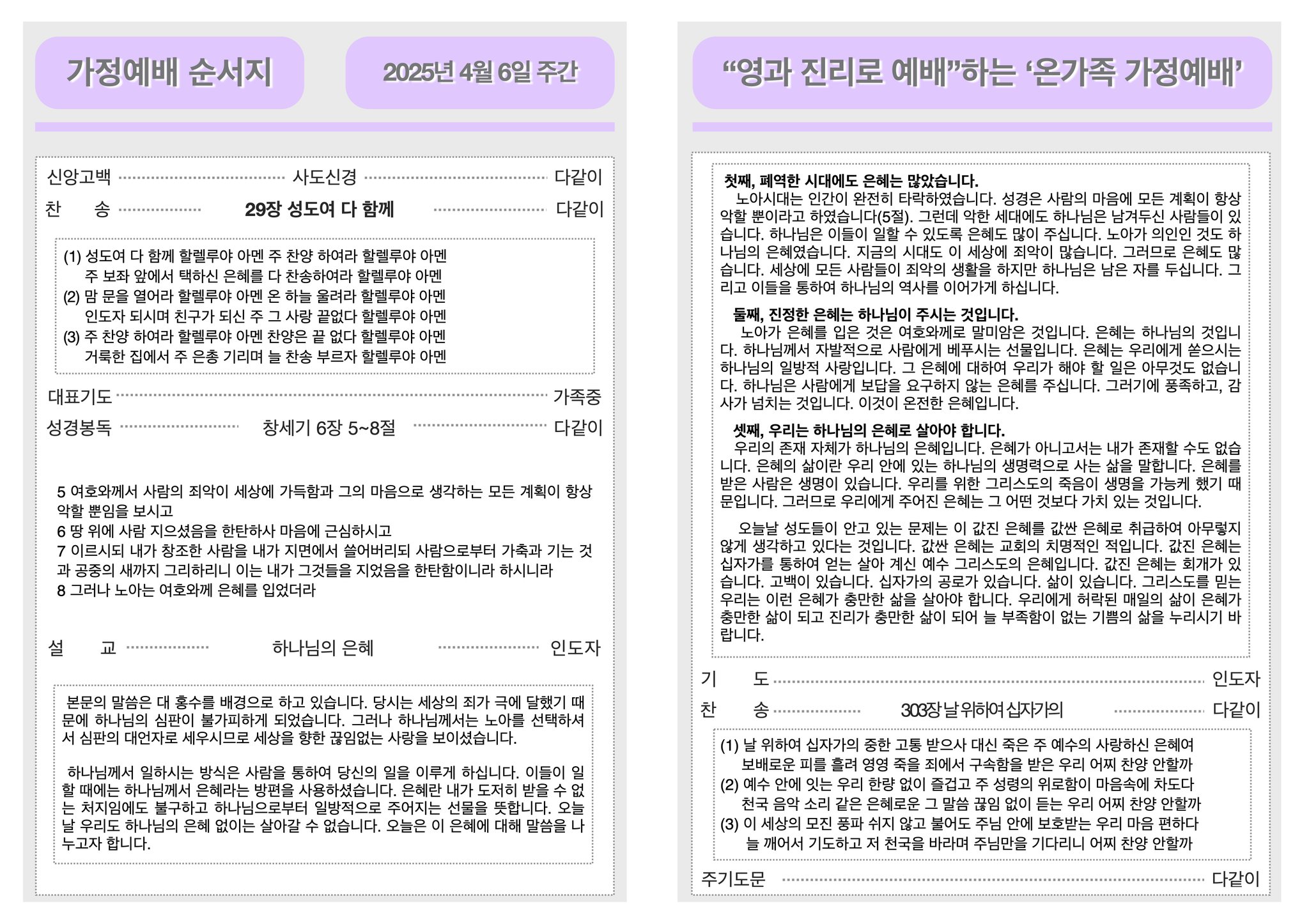 2025년 4월 6일 가정예배 순서지