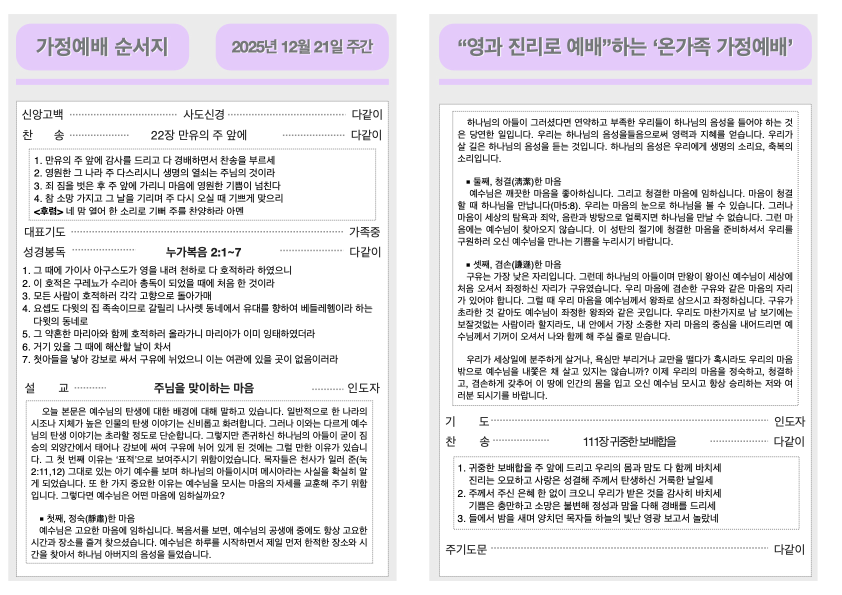 2025년 12월 21일 가정예배순서지