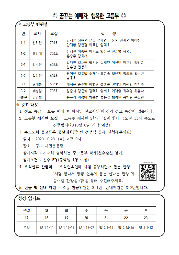 9/17 고등부 주보