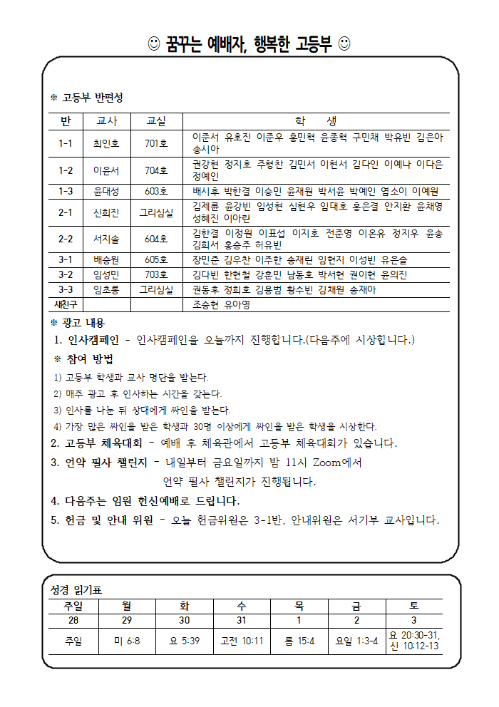 1/28 고등부 주보