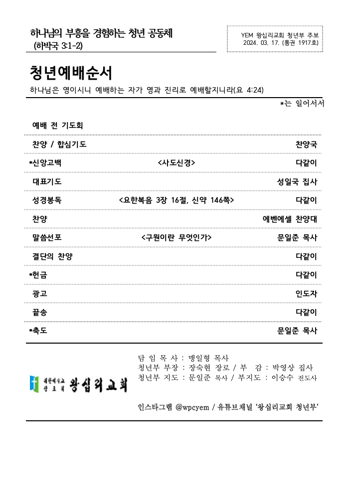 3/17 청년부 주보