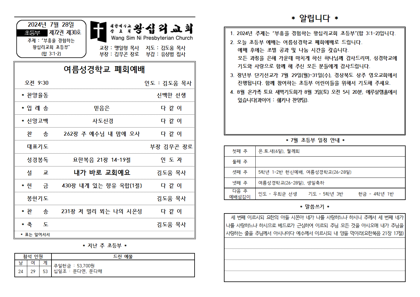 7/28 초등부 주보