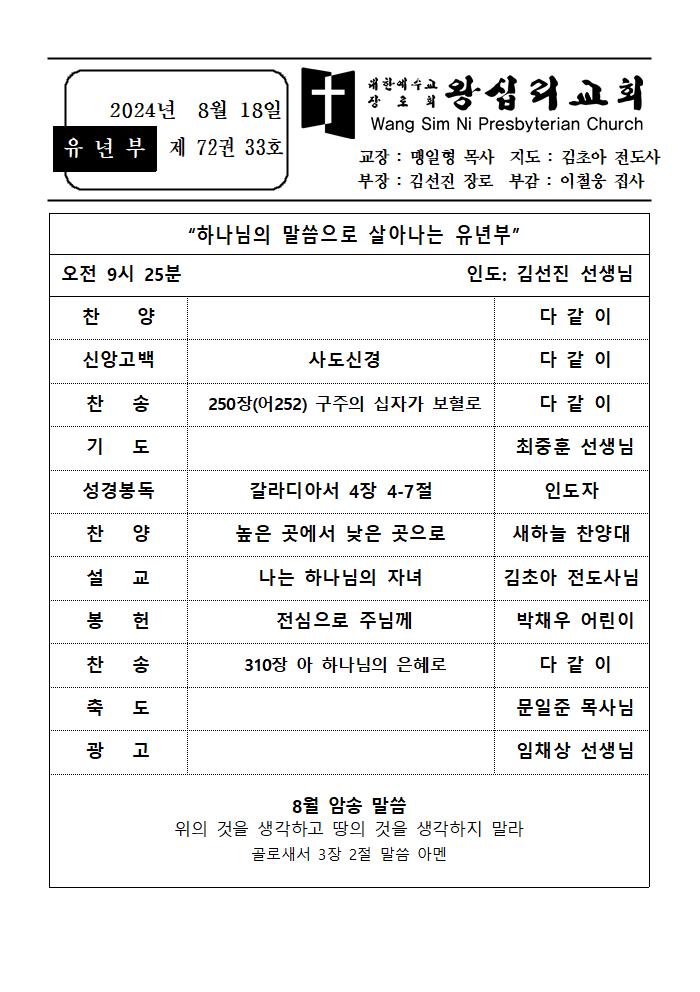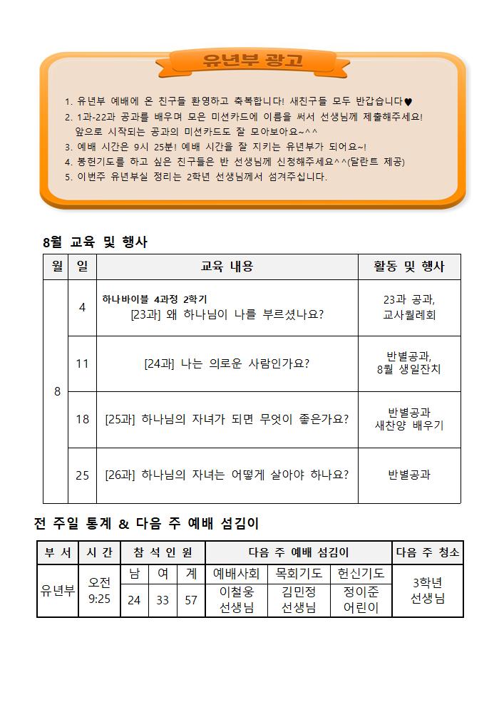8/18 유년부 주보