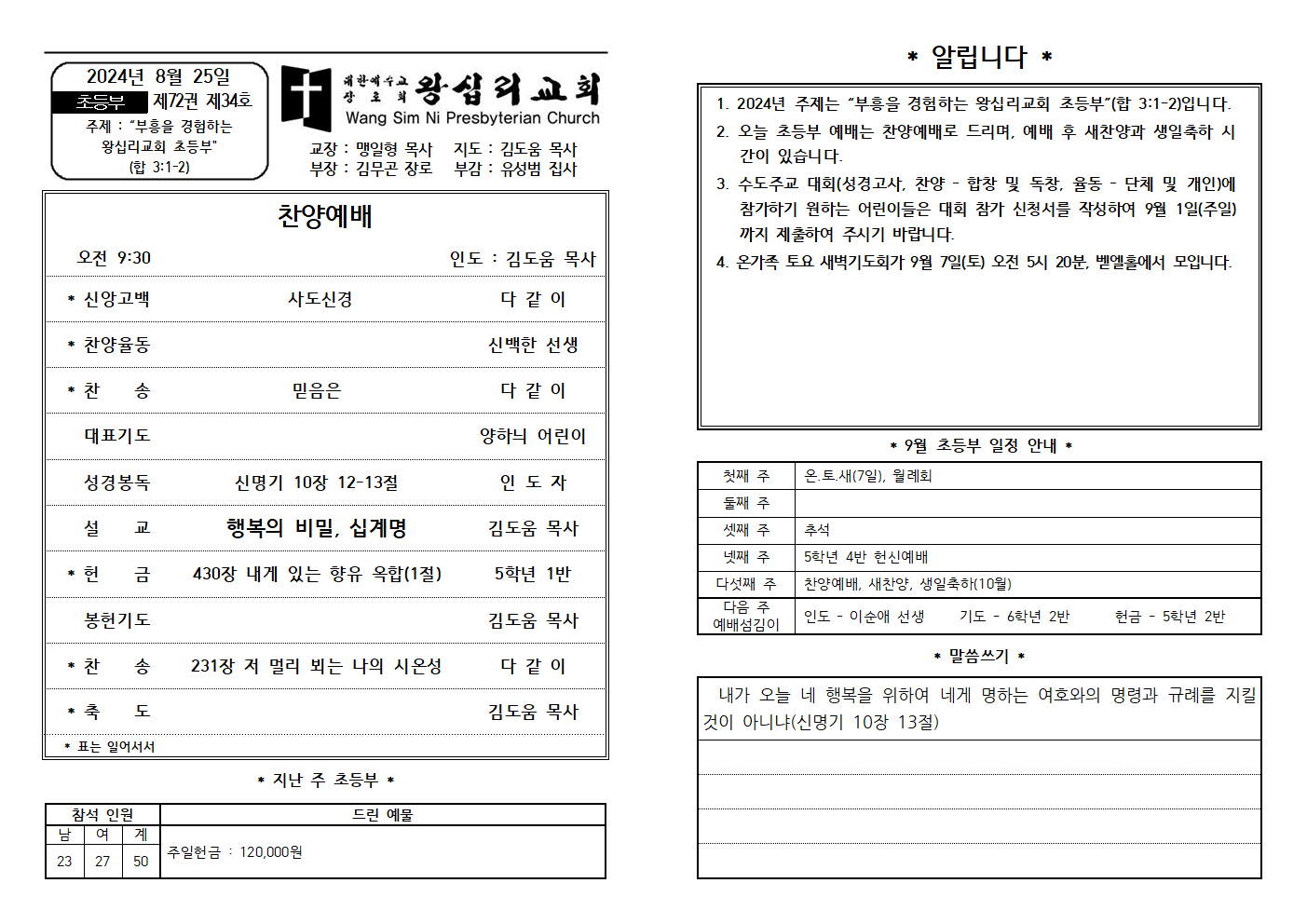 8/25 초등부 주보