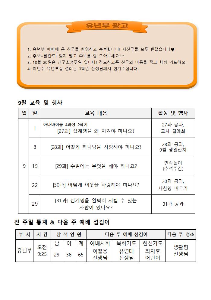 9/29 유년부 주보