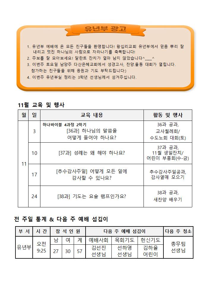 11/3 유년부 주보