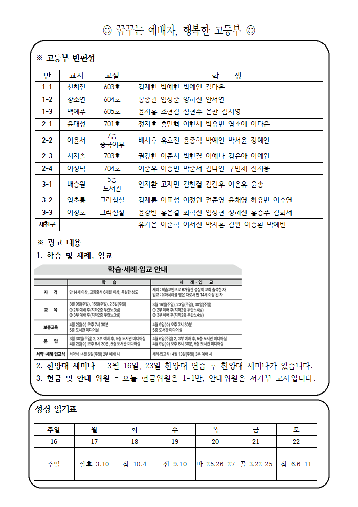 3/16 고등부 주보