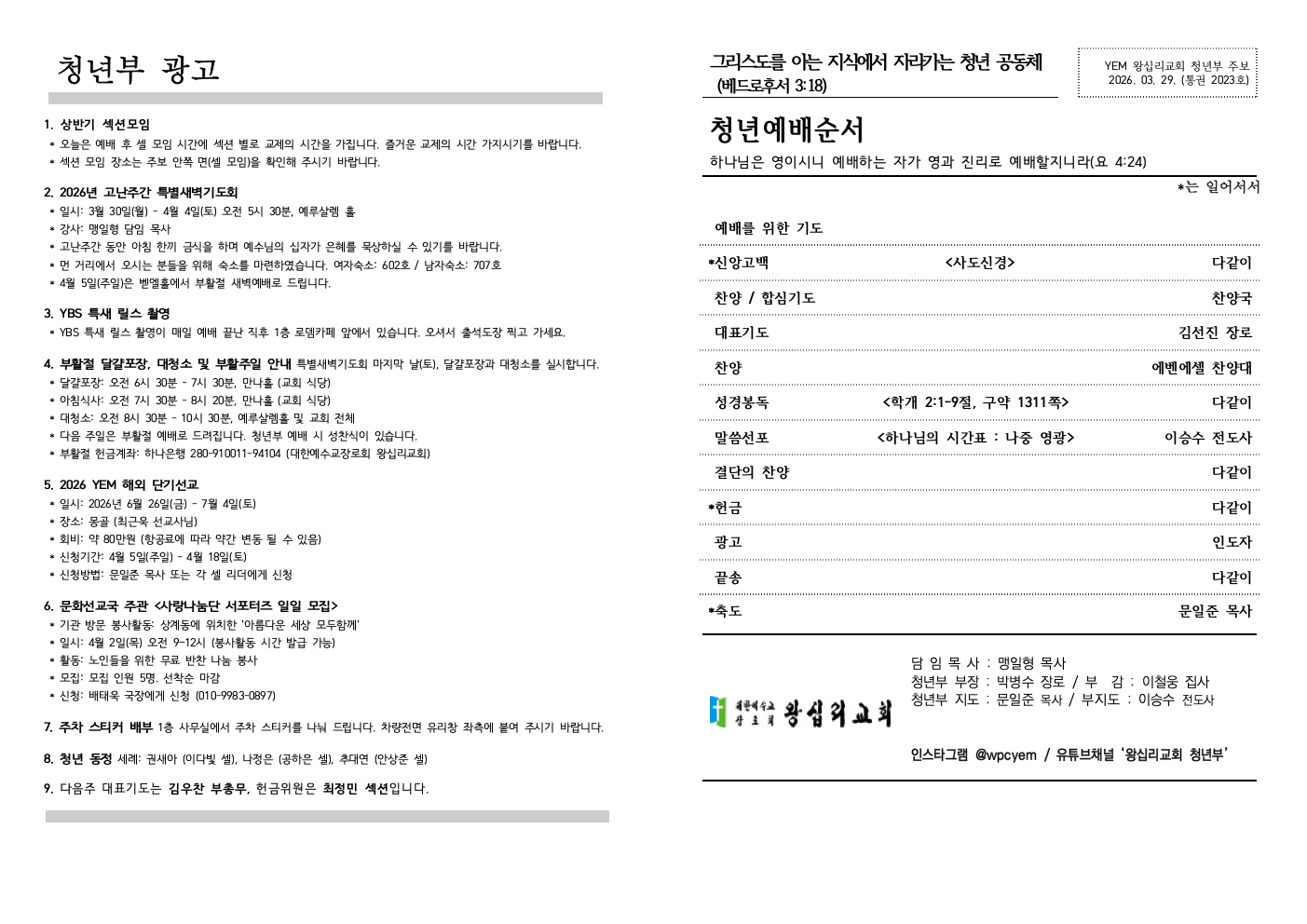 20260329 청년부 주보 (섹션모임).pdf