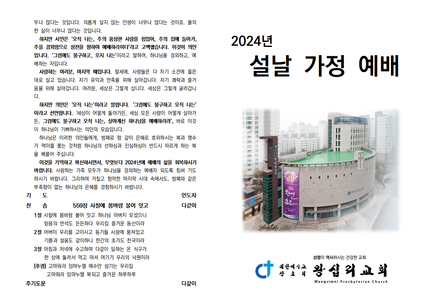 2024년 설날 가정 예배 순서지