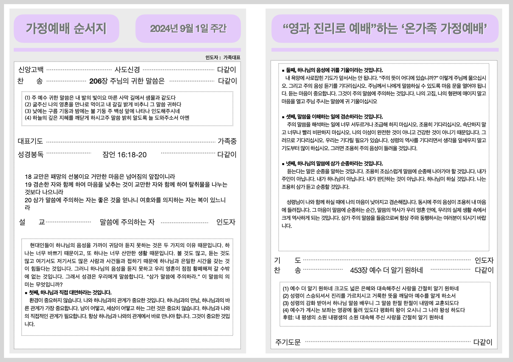 2024년 9월 1일 가정예배순서지
