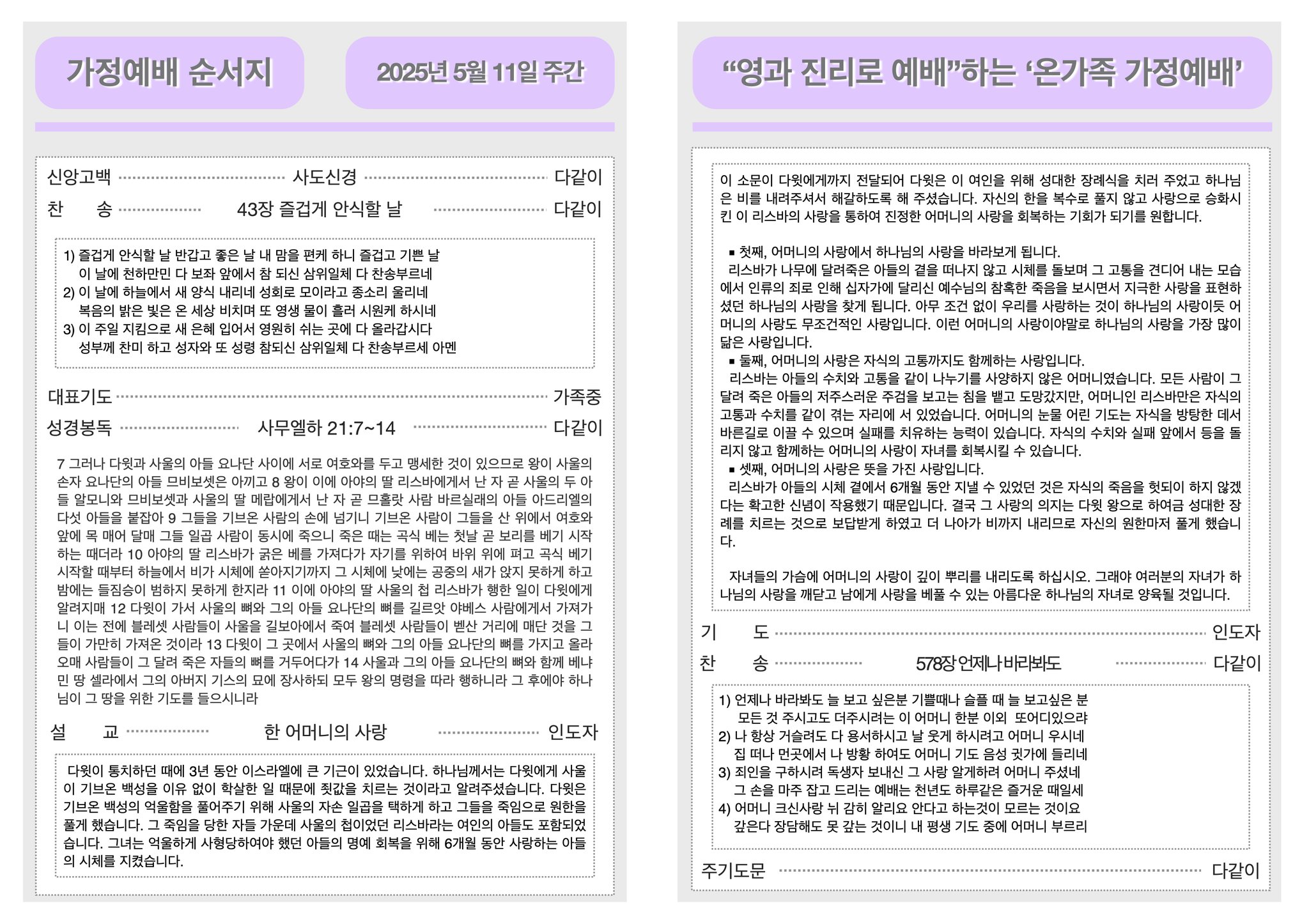 2025년 5월 11일 가정예배순서지