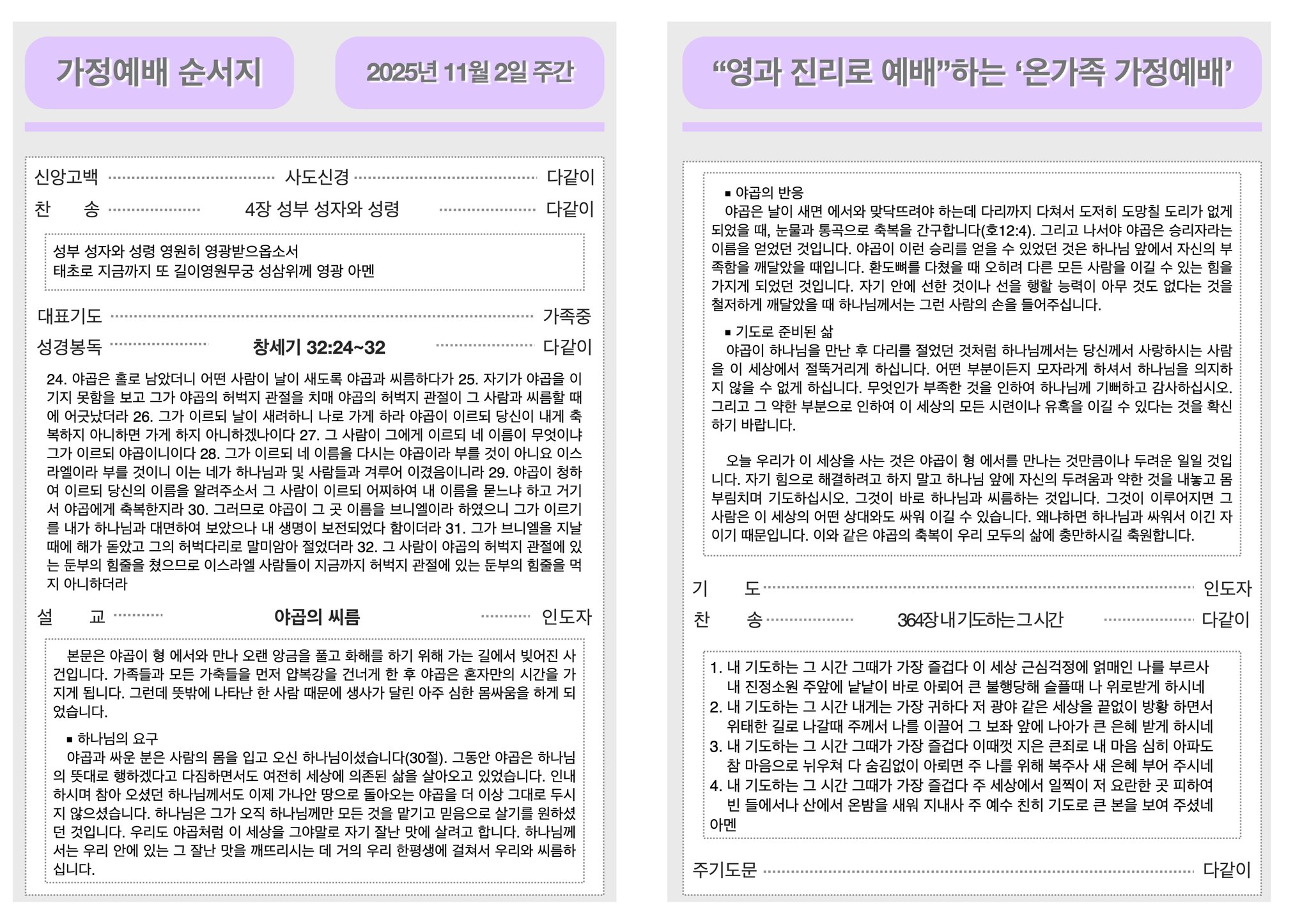 2025년 11월 2일 가정예배순서지