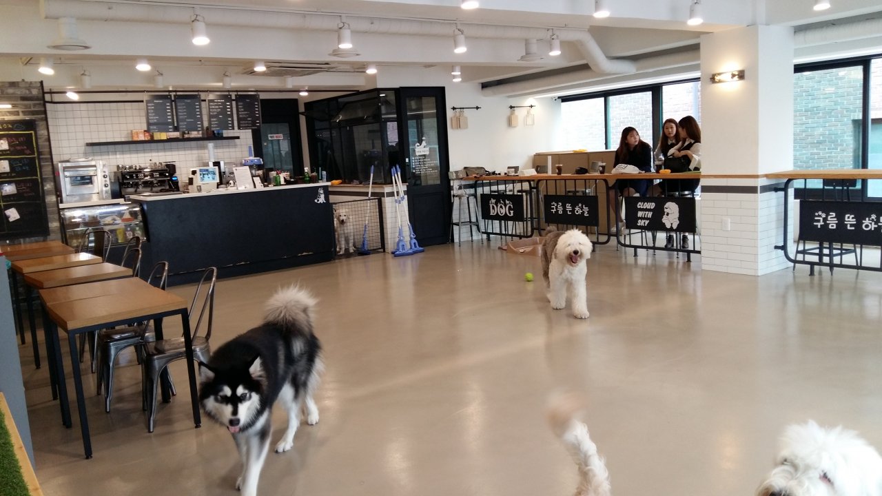 홍대앞에 있는 애견 카페 " 구름뜬 하늘" 을 찾아서