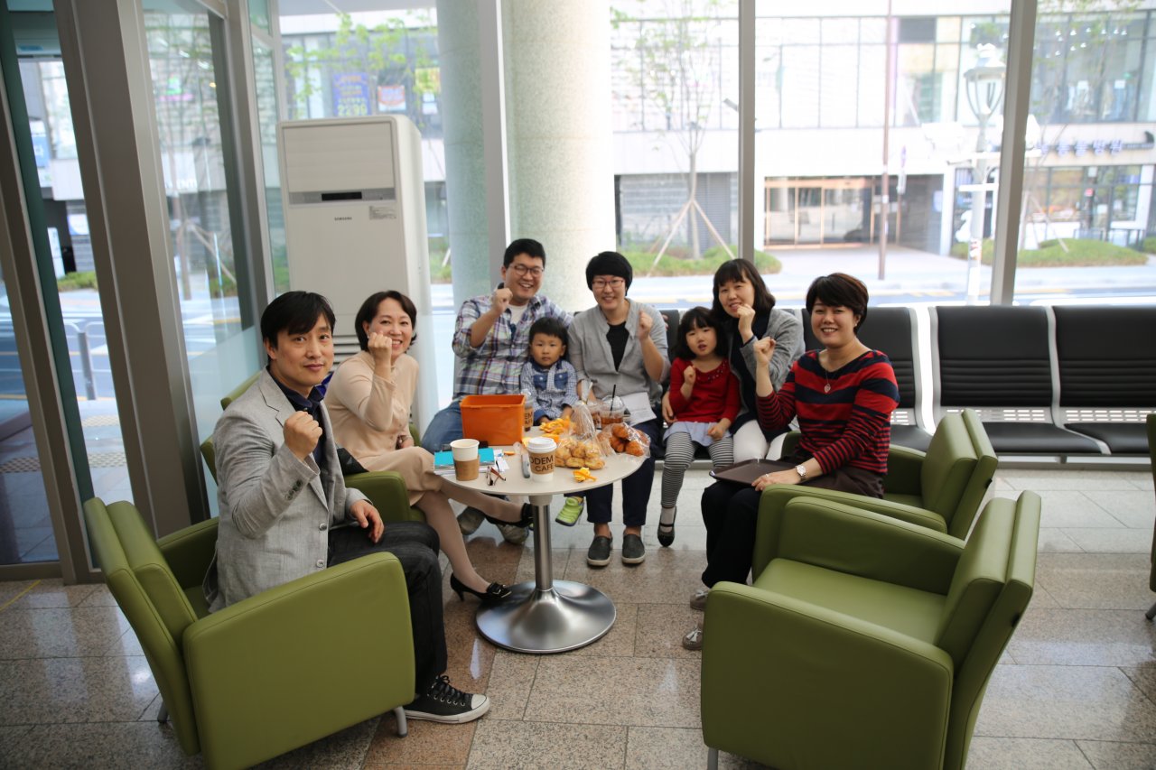 4/23 주일 교회로비에서 심방일정등을 정하기 위해 구역식구들이 모였습니다.