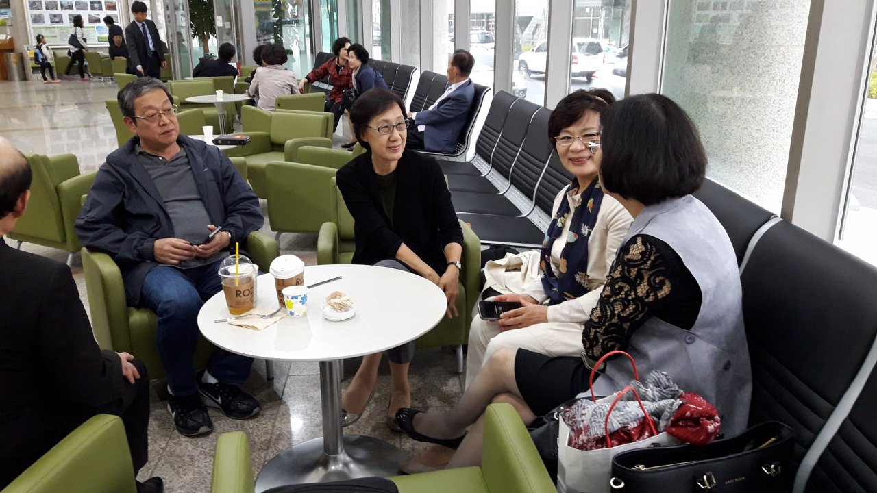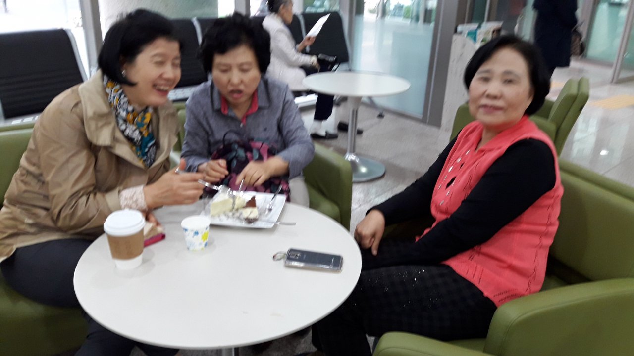 로비에서 따듯한 사랑의 교제를 ~ 나누는 중~~