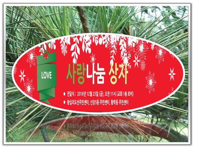 성탄절을 맞아 왕십리교회 모든 구역식구들이 마음을 모아 교회 주변의 연약한 이웃들에게 주님의 사랑을 나누고자 합니다.