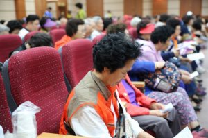 레크레이션하고 본당에서 내려 오면서 음료수 받는 모습!!